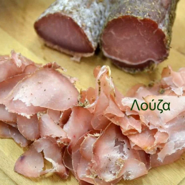 Λούζα, αλλαντικό Κυκλάδων Παραδοσιακό αλλαντικό των Κυκλάδων. Φτιάχνονταν παλαιότερα 1 μήνα πριν τα Χριστούγεννα, την περίοδο των χοιροσφαγίων. Οι λούζες είναι ουσιαστικά 2 κομμάτια καθαρό...