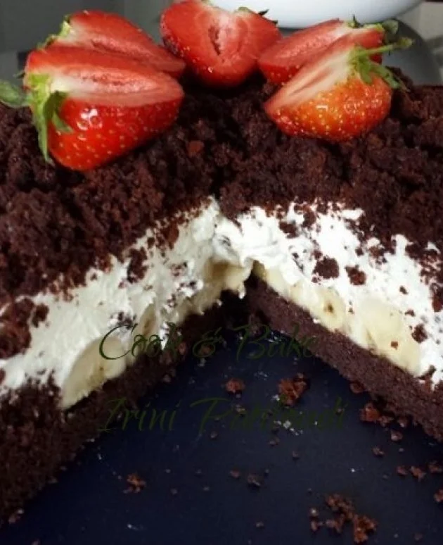 Κέικ σοκολάτα με κρέμα και μπανάνες