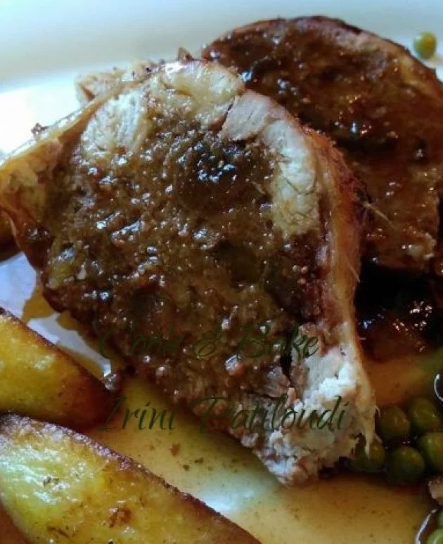 Κόκορας γεμιστός με πορτοκάλι και κυδώνι