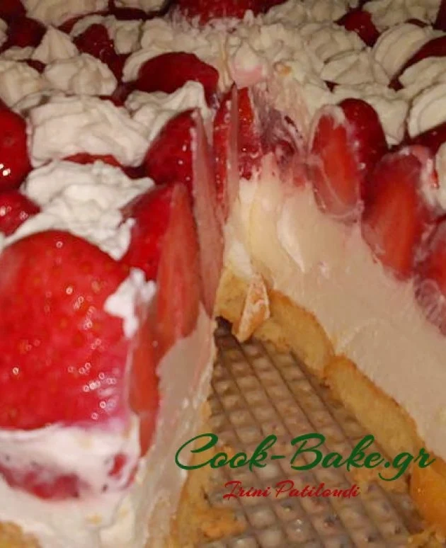 Τούρτα Cheesecake με φράουλες και σαβαγιάρ