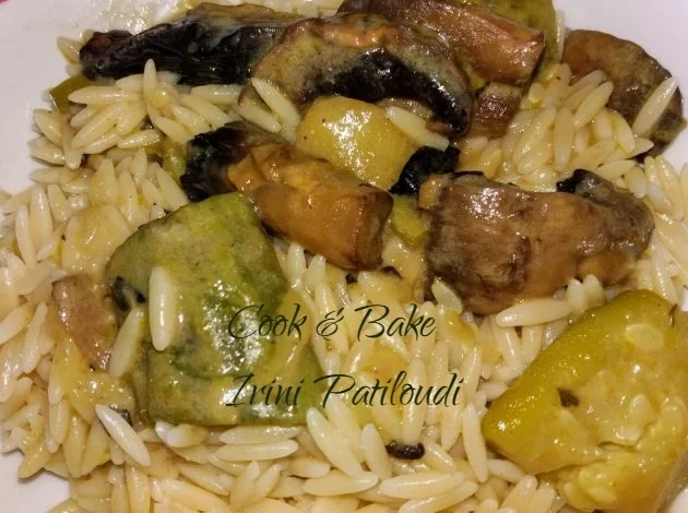 Κριθαράκι με μανιτάρια και κολοκυθάκια