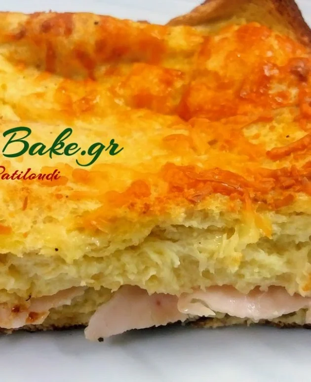 Σουφλέ με ψωμί του τοστ, σαλάμι, τυρί