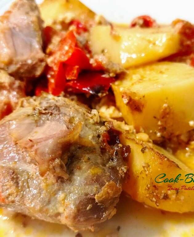 Χοιρινό με πατάτες πιπεριές και φέτα