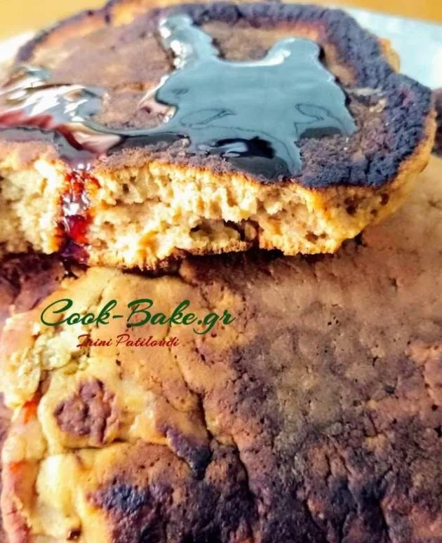 Τηγανίτες Pancakes ολικής με μπανάνες και χαρουπόμελο