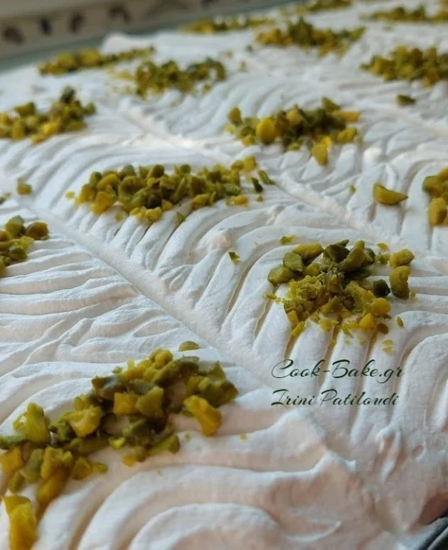 Εκμέκ με τσουρέκι, κρέμα, σαντιγί, σιρόπι