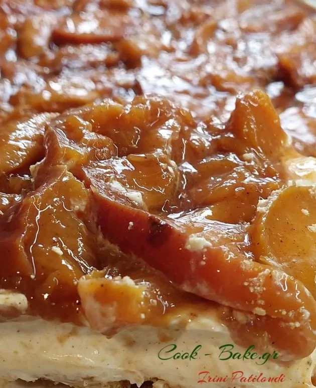 Τσιζκέικ Cheesecake με καραμελωμένα ροδάκινα