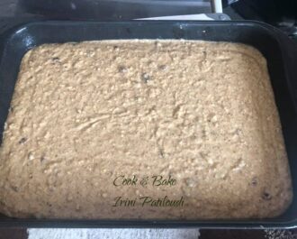 Λαδώνουμε ένα ταψάκι μεσαίο και αδειάζουμε μέσα το μείγμα. Ψήνουμε στους 170- 180 για 60 λεπτά.