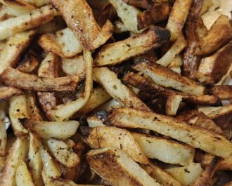Εγώ το συνόδευσα με πατάτες σαν τηγανητές στο γκριλ του φούρνου.