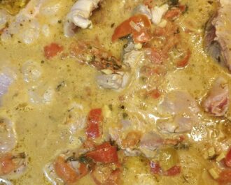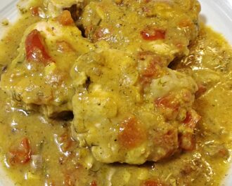 Σερβίρουμε είτε σκέτο όπως είναι ή με κάποιο συνοδευτικό όπως ρύζι, πατάτα βραστή ή ψητή, ζυμαρικά κλπ.