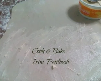 Σκεπάζουμε με το δεύτερο φύλλο μας την κρέμα και λαδώνουμε από πάνω.