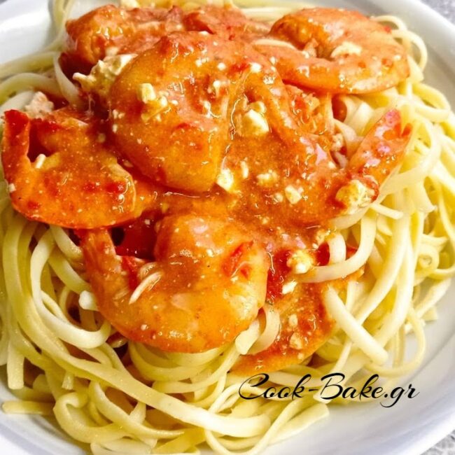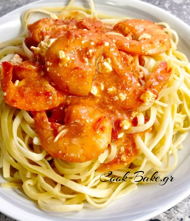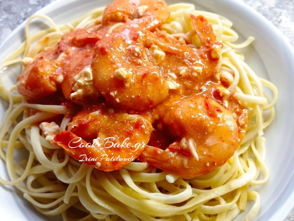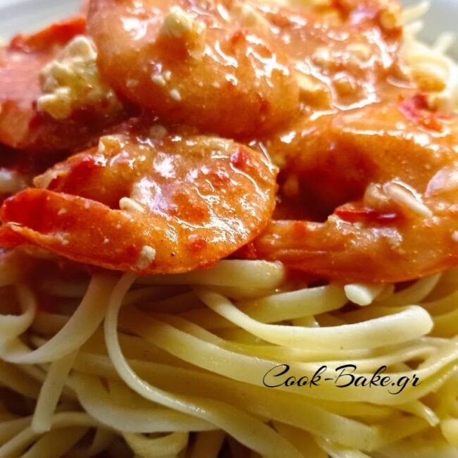 Γαρίδες ελληνικές τιγρέ σε ντομάτα φρέσκια και τυρί κρέμα
