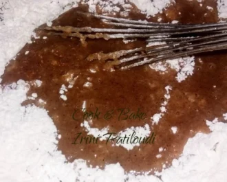 Προσθέτουμε το αλεύρι σταδιακά με το μπείκιν πάουντερ. Ανακατεύουμε καλά. Θέλουμε να γίνει μία ζύμη πολύ ρευστή. Λίγο πιο ρευστή από ένα κέικ.