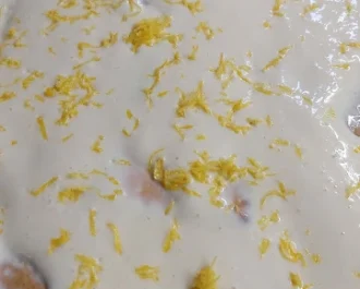 Σκεπάζουμε με κρέμα και πασπαλίζουμε με το ξύσμα λεμόνι.