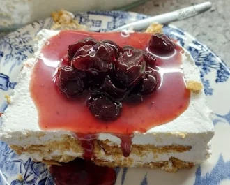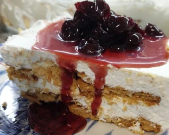 Υπέροχο γλυκό ψυγείου με μπισκότα πτι μπερ και γλυκό κουταλιού από πάνω της αρεσκείας μας.