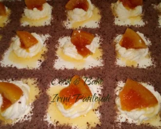 Κάνουμε ροζέτες με κορνέ αν θέλουμε και διακοσμούμε με γλυκό πορτοκάλι και λίγο από το σιρόπι του.