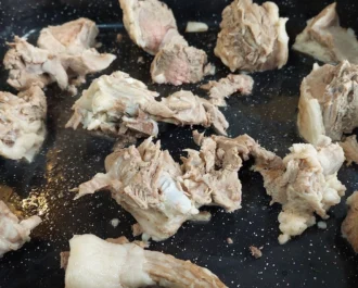 Βράζουμε το κρέας μας μισή ώρα να μαλακώσει και το τοποθετούμε σε ταψί.