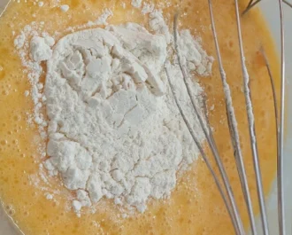 Χτυπάμε τα αυγά με το αλεύρι, λίγο αλάτι και πιπέρι και μετά προσθέτουμε το γιαούρτι και ανακατεύουμε να γίνει μία ωραία κρέμα.