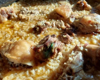 Κατσικάκι ή αρνί βρασμένο πρώτα και έπειτα ψημένο με ρύζι,