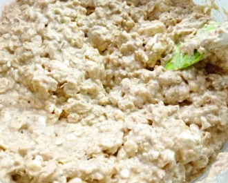 Αν είναι αραιή βάζουμε λίγο ακόμα αλεύρι ολικής.
