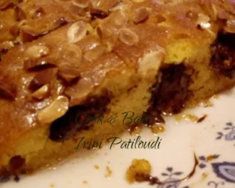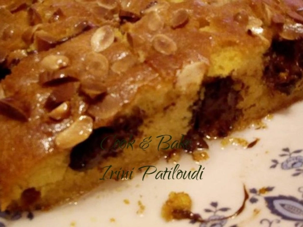 Υπέροχο σιροπιαστό γλυκό με κομμάτια σοκολάτας και λευκά αμύγδαλα.
