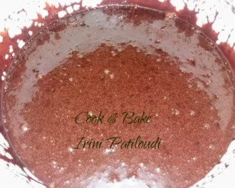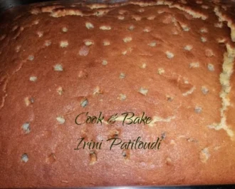 Ψήνουμε στους 170 βαθμούς σε αέρα για 45 λεπτά σε ταψί όχι φόρμα. Μόλις κρυώσει λίγο τρυπάμε με το χοντρό καλαμάκι και κάνουμε πολλές τρύπες.