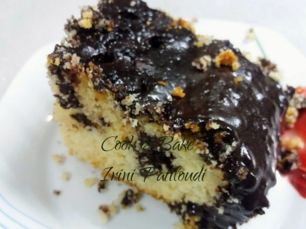Πολύ νόστιμο κέικ με άρωμα βανίλιας και σούπερ γλάσο σοκολάτας.