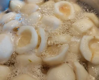 Αφήνουμε να κρυώσουν λίγο και τα σουρώνουμε,