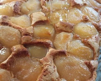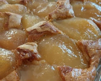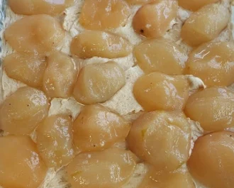 Κέικ ζουμερό με αχλάδια κομπόστα