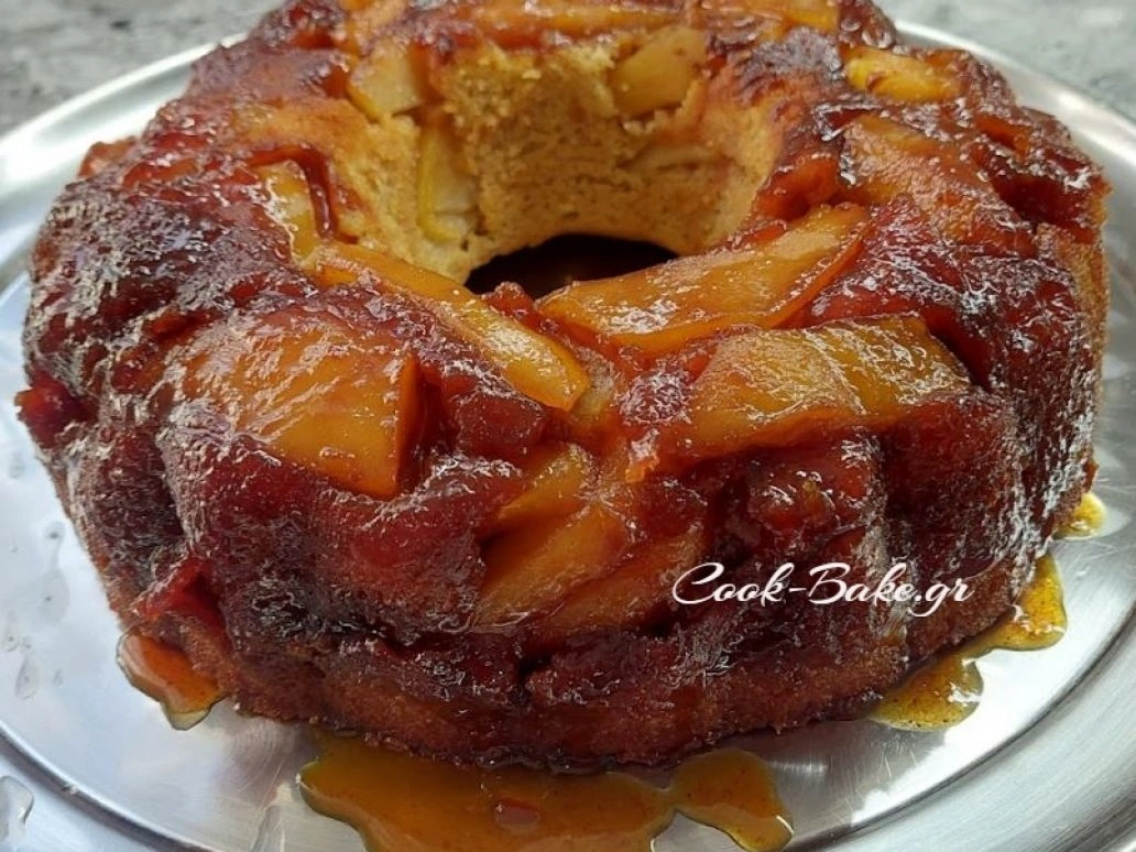 Κέικ με μήλα κανέλα και ρευστή καραμέλα