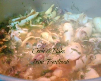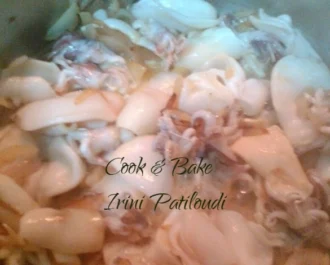 Καλαμαράκια με ρύζι στην κατσαρόλα.