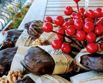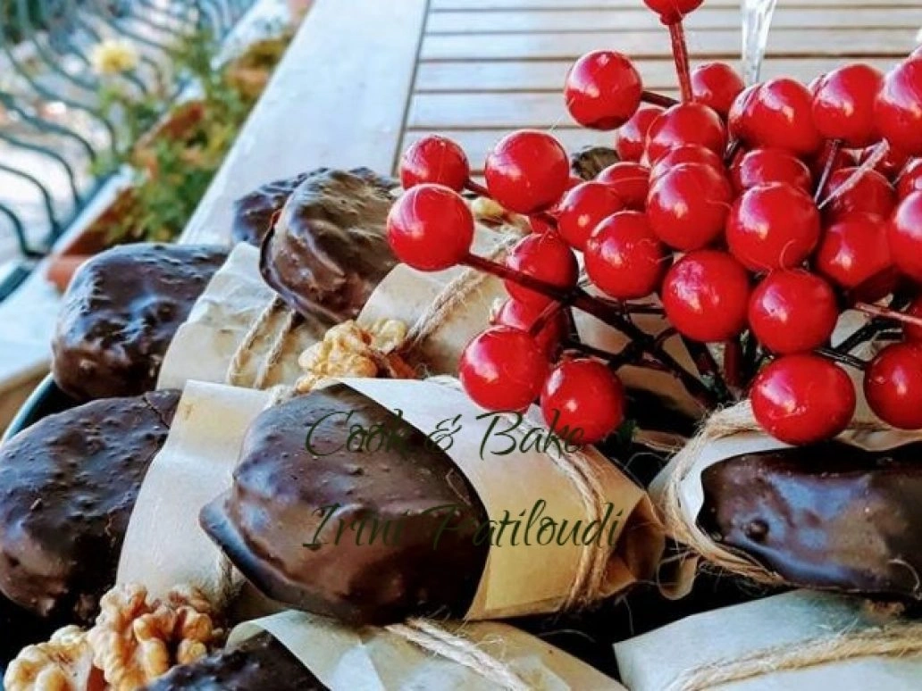 • Λιώνουμε την κουβερτούρα και βυθίζουμε τις φέτες μέσα σε αυτήν. Τοποθετούμε σε λαδόκολλα να στεγνώσουν.