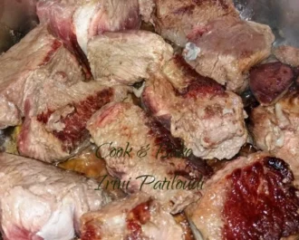 Προσθέτουμε όλα τα υλικά και νερό ίσα ίσα να σκεπάσει το κρέας, Βράζουμε σε χύτρα 1 ώρα , σε κατσαρόλα παραπάνω, το δοκιμάζουμε να δούμε αν μαλάκωσε.