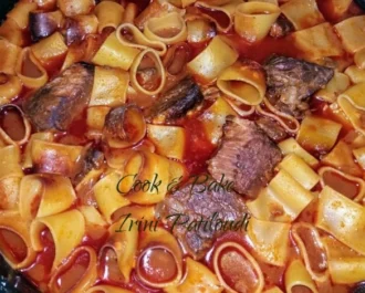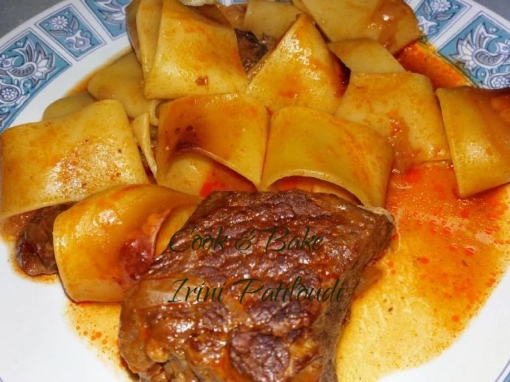 Κοκκινιστό μοσχάρι με ζυμαρικά