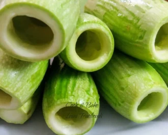 Aδειάζουμε τα κολοκυθάκια από μέσα με το ειδικό εργαλείο.