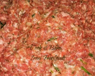 Ζυμώνουμε τον κιμά με τα αναγραφόμενα υλικά.