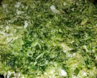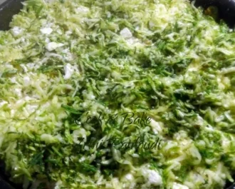 Βάζουμε τα μισά κολοκυθάκια και τυρί πάνω από τα φύλλα μας. Τα αυγά με γάλα τα χωρίζουμε σε 3 μέρη και προσθέτουμε το ένα μέρος εδώ να πάει παντού και δύο κουταλιές ελαιόλαδο. Επαναλαμβάνουμε το ίδιο με τα άλλα δύο φύλλα και την γέμιση και μας μένει το λίγο γάλα-αυγό.