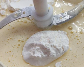 Ανακατεύουμε καλά μέσα και το κορν φλαουρ.