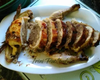 Κόκκορας γεμιστός της φίλης Hélène Chatzidimitriou-Rommes.