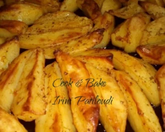 Κόβουμε πατάτες κυδωνάτες σε ταψί, ανακατεύουμε καλά με ελαιόλαδο,αλάτι, πιπέρι, ρίγανη, λεμόνι, μουστάρδα και ενάμιση ποτήρι νερό και ψήνουμε για μία ώρα περίπου σε 200 βαθμούς.