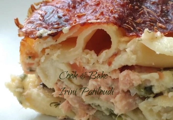 Λαζάνια με σολωμό φρέσκο και καπνιστό της φίλης Matia Alvanou.