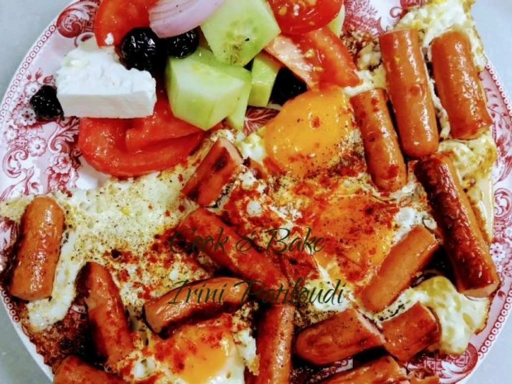 Λουκάνικα με αυγά τηγανιτά, εύκολο και καθημερινό