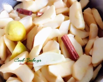 Πλένουμε, καθαρίζουμε τα μήλα μας. Αφαιρούμε τα κουκούτσια και τα κόβουμε όχι πολύ λεπτά μην διαλυθούνε.