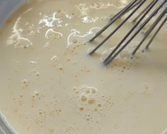 Χτυπάμε ελαφρά τα αυγά με το γάλα και το περιχύνουμε στα ζυμαρικά μας.
