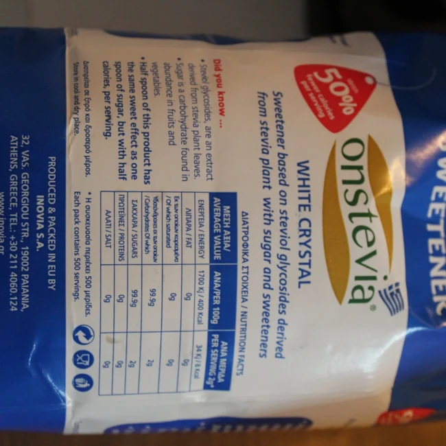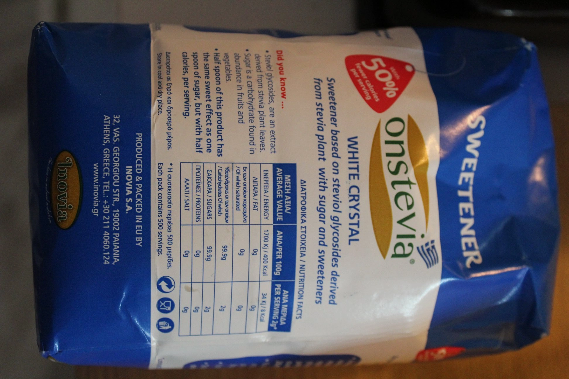 (διαβάστε στην συσκευασία της στέβια την αντιστοιχία με την ζάχαρη)