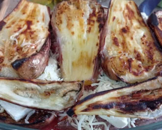 Ξανά μελιτζάνες, σάλτσα, τυριά, το υπόλοιπο σκόρδο.