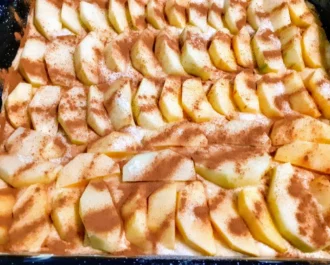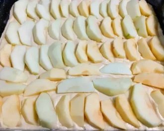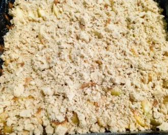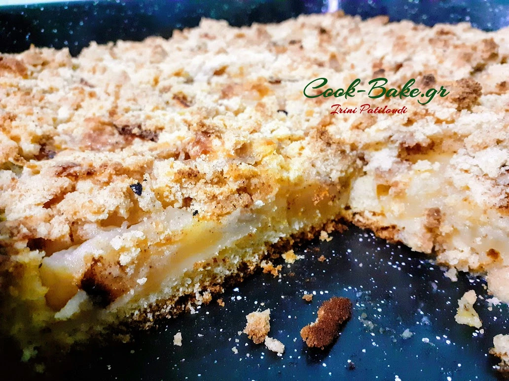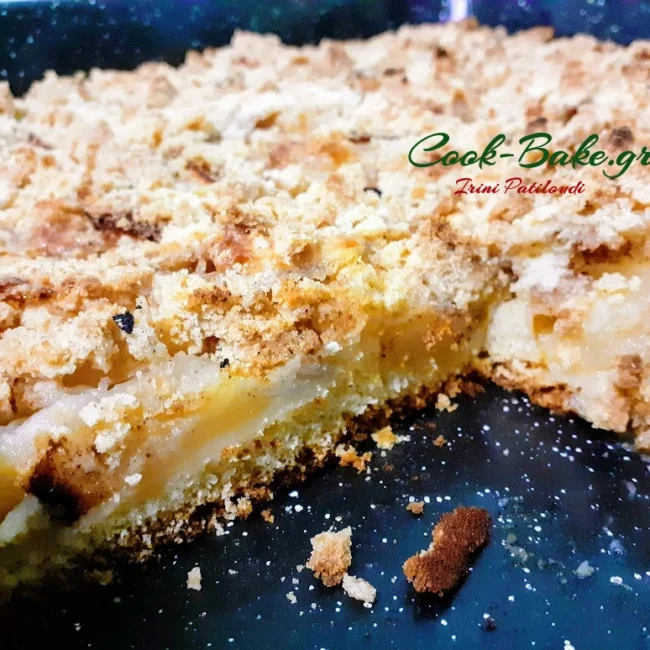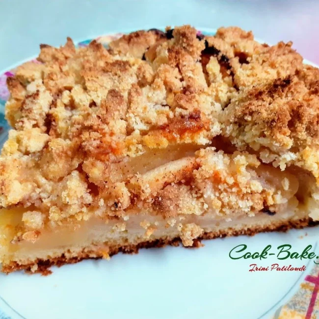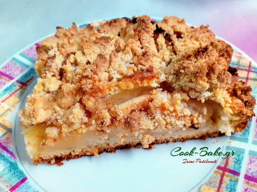 Μηλόπιτα αφράτη σκεπασμένη με κράμπλ