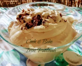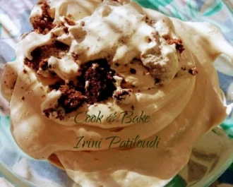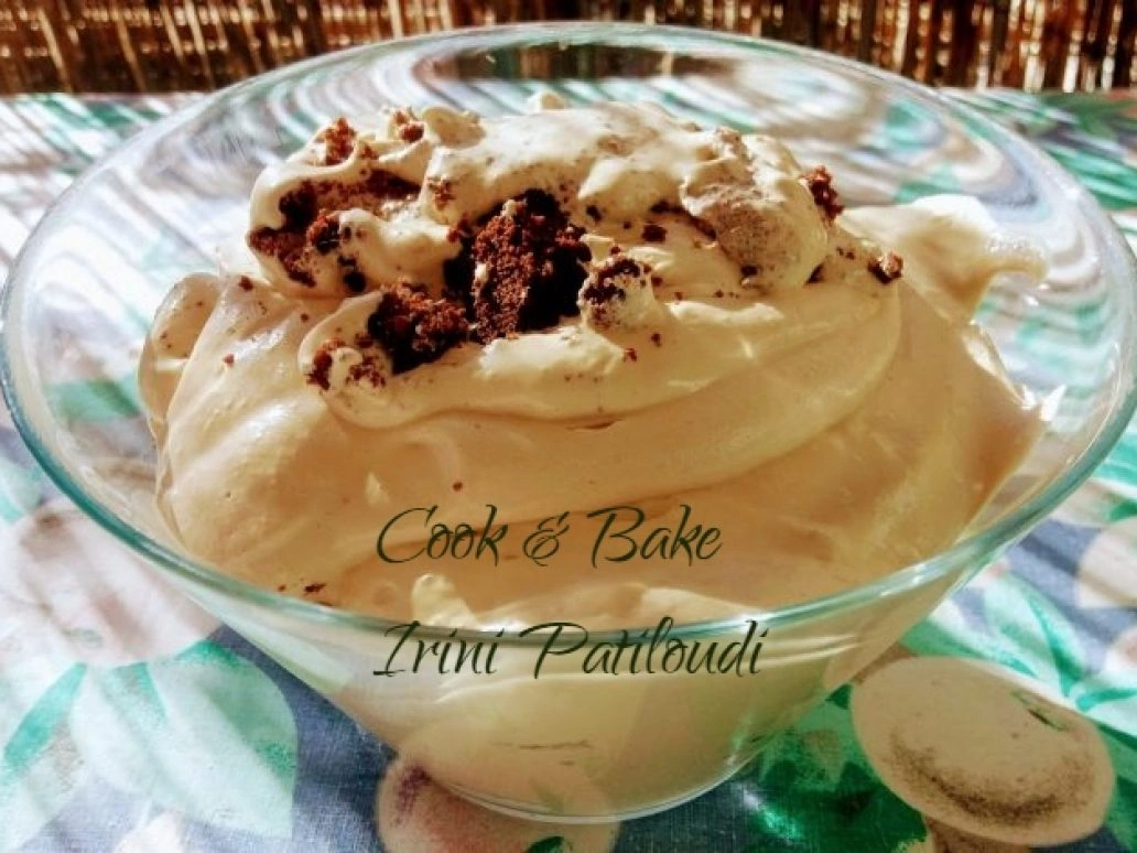 Μους μόκα , κρέμα με γεύση καφέ και μπισκότα.