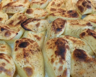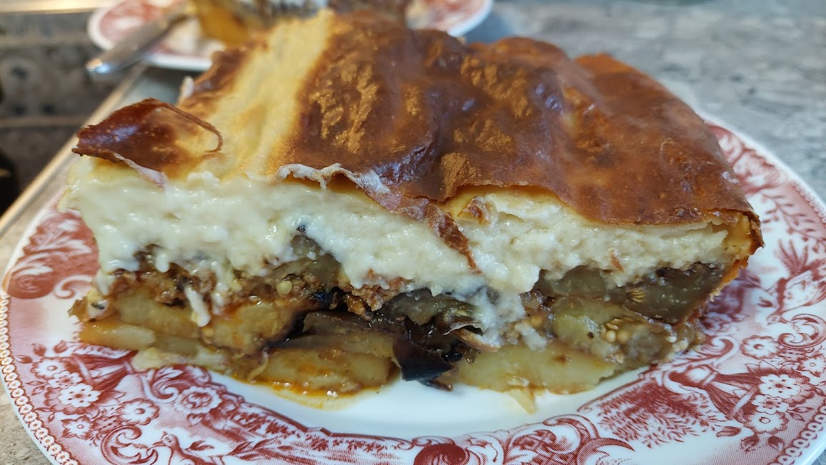 Μουσακάς με ψητές πατάτες και μελιτζάνες