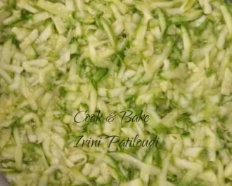 5 μέτρια κολοκυθάκια τριμμένα και σουρωμένα να βγάλουν τα πολλά υγρά