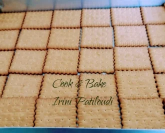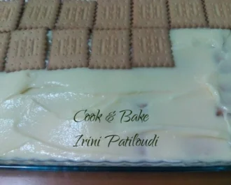 • Απλώνουμε όλη την κρέμα στα μπισκότα και αραδιάζουμε το δεύτερο πακέτο από πάνω.